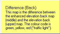 这张图是增强图(中间的)和高度图(上面的)之间的差异。色彩编码包括绿色、黄色、红色(交通灯颜色)。